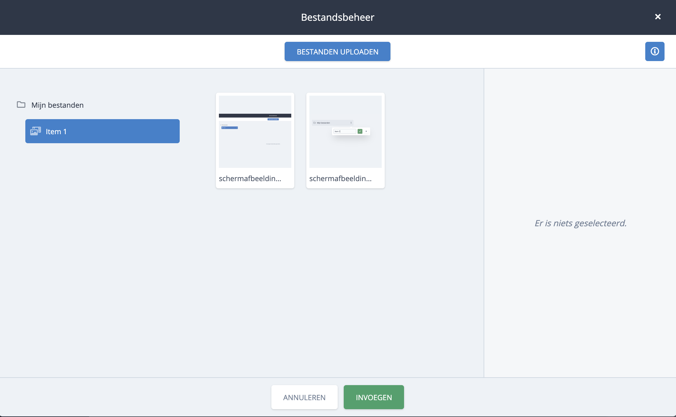Het uploaden van foto's kan door op de button "bestanden uploaden" te klikken.