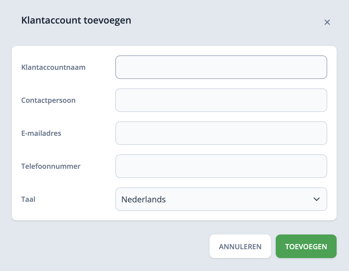 Stap 3: Klik na opslaan het desbetreffende klantaccount aan en voeg een gebruiker toe onder het klantaccount.