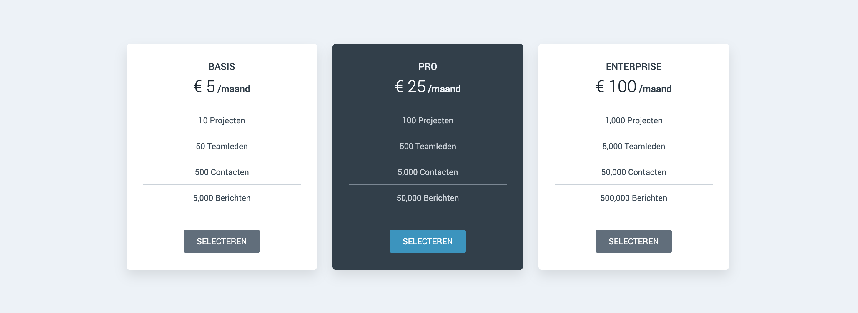 Prijslijst/pakket blok