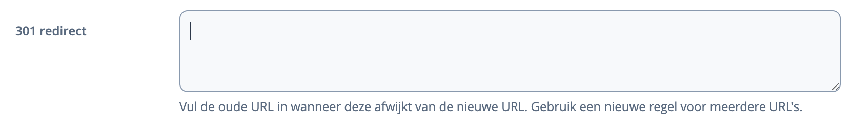 Met de 301-redirects kun je aan zoekmachines aangeven welke oude URL's op de betreffende pagina dienen uit te komen. Stel dat op de oude website de betreffende pagina de naam "overons.html" had, dan vul je in het vak hierboven in "overons.html". Je kunt meerdere redirects instellen. Iedere redirect komt op een nieuwe regel te staan. Dat ziet er bijvoorbeeld zo uit: