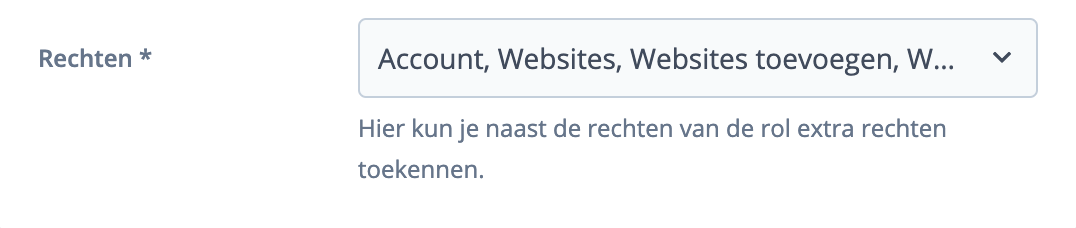 De mogelijkheid om rechten toe te wijzen staat in het gebruikersbeheerscherm onder de dropdown waar de rol gekozen wordt.